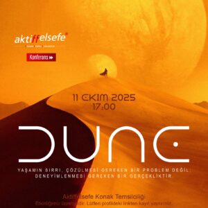 Dune serisi ile Joseph Campbell’in “Kahramanın Yolculuğu” anlatısını birlikte inceleyeceğimiz konferansımız için 11 Ekim 2025 Cumartesi günü saat 17:00’da sizi Aktiffelsefe Konak Temsilciliğine bekliyoruz.